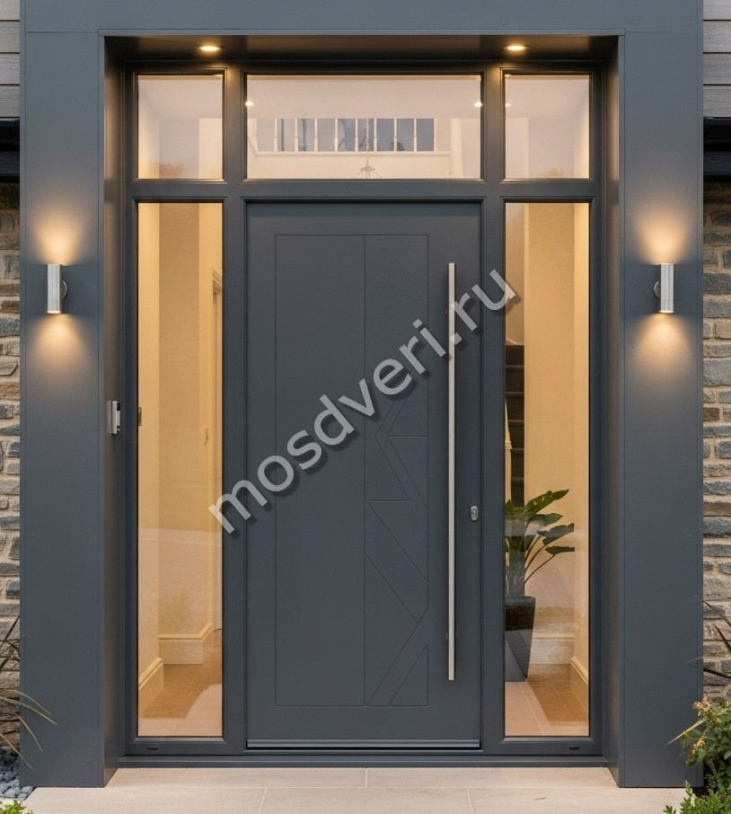 Большая входная дверь серая — совмещает эстетичность и превосходные защитные характеристики.