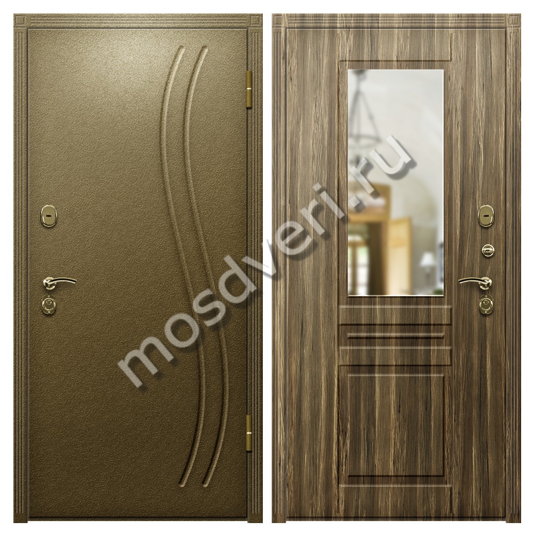 Металлическая входная дверь в дом с зеркалом в Дубне